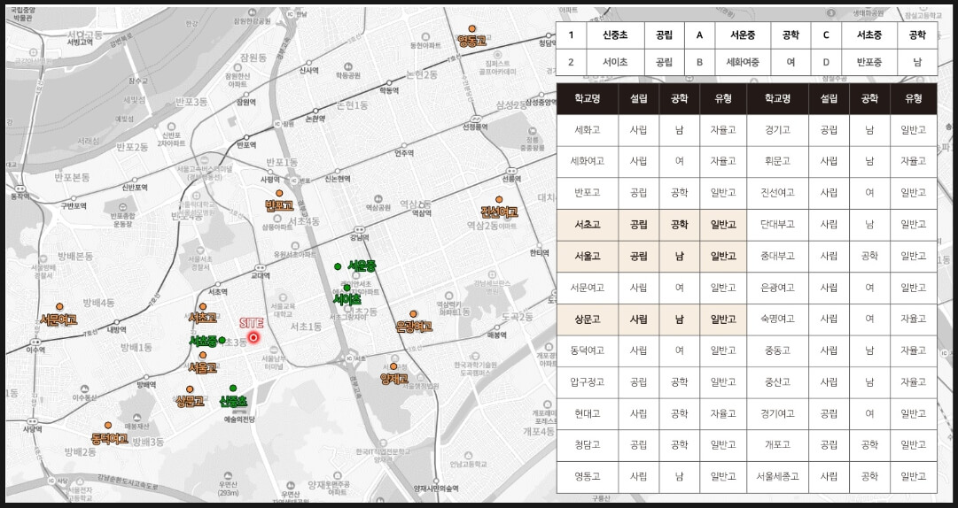- 인근 학교: 서초고, 서울고, 상문고 등 우수한 교육기관과 학원들이 밀집해 있습니다.