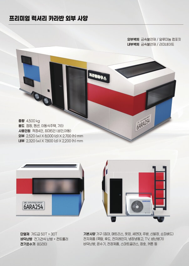 카라핑하우스는 카라반(Caravan), 글램핑(Glamping), 그리고 **전원주택(Housing)**의 장점을 모두 결합한 새로운 형태의 주거 공간입니다. 전원주택의 여유로움, 글램핑의 편안함, 카라반의 이동성을 한 번에 경험할 수 있는 혁신적인 주거 형태로, 기존의 전원주택과는 다른 새로운 라이프스타일을 제공합니다. 카라핑하우스는 자연 속에서 가족과 함께 편안하게 쉴 수 있는 공간을 제공하며, 도심 속 바쁜 삶에서 벗어나 자연의 여유를 만끽할 수 있는 최적의 장소입니다.