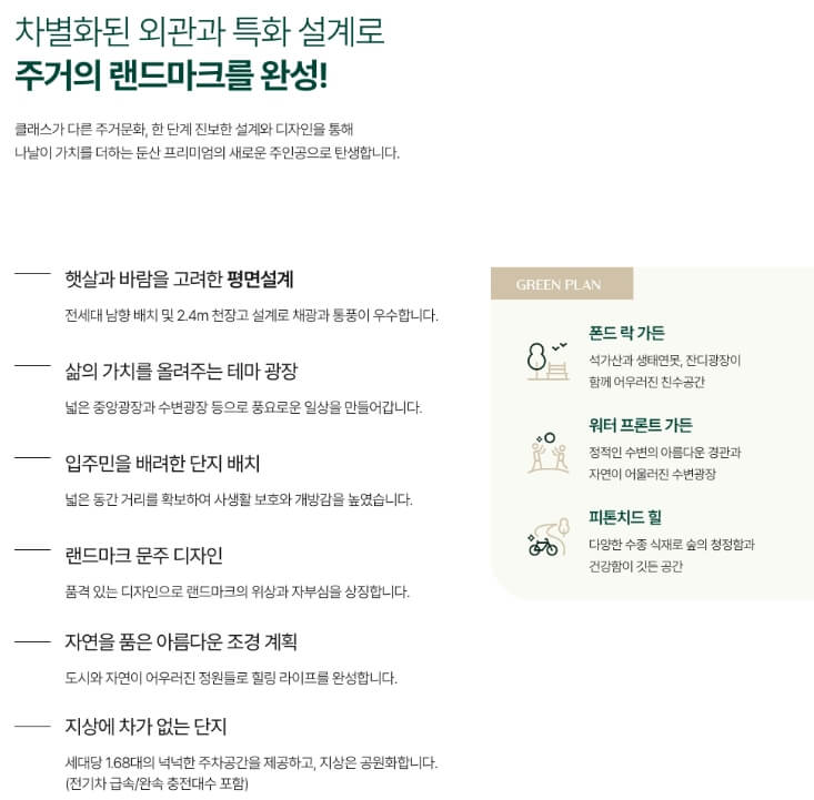 • 자연 친화적 단지: 중앙광장과 넓은 조경 공간을 통해 쾌적하고 자연 친화적인 환경을 제공합니다.