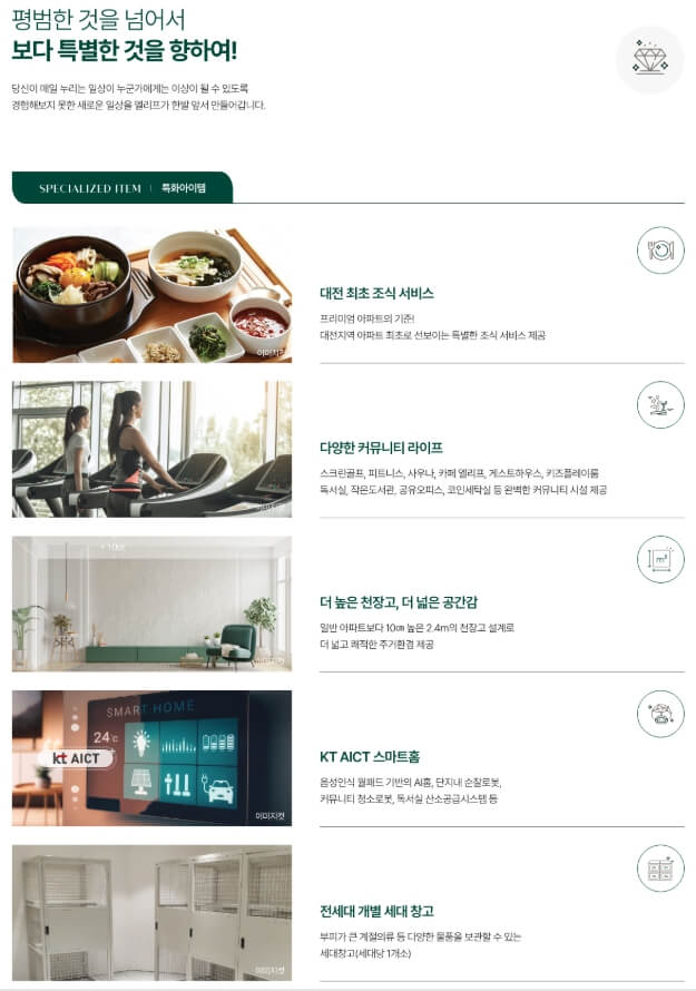 대전 최초의 조식 서비스와 프리미엄 커뮤니티 시설