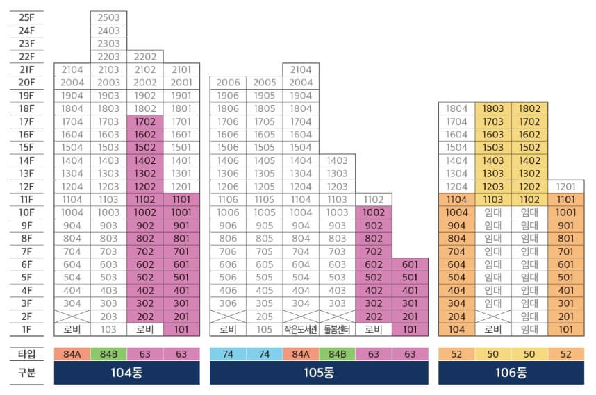 부대시설: 휘트니스센터, 실내골프연습장, 스크린 골프연습장, 샤워실, 작은 도서관, 어린이집, 다 함께 돌봄 센 테, 경로당 등
