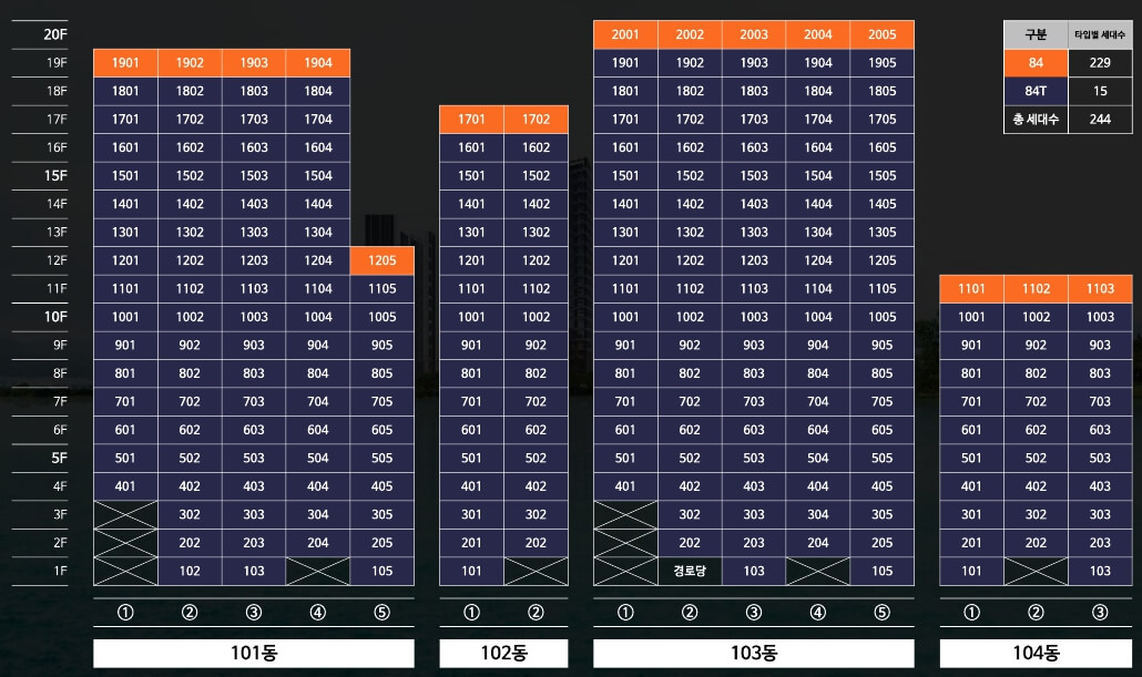 세대수: 총 244세대 (전용 84㎡, 약 34평형)