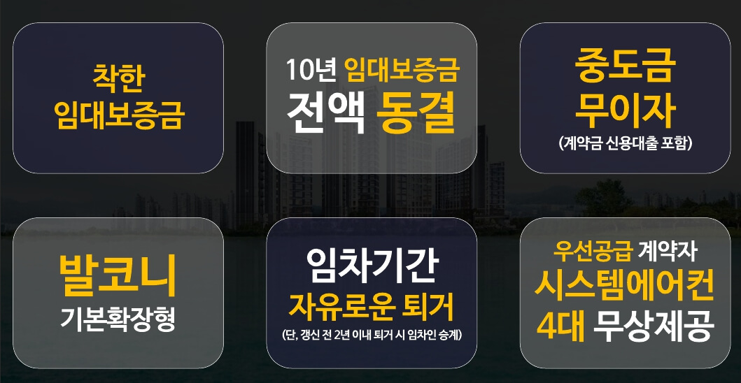 - 중도금 무이자 혜택과 함께 발코니 확장, 우선분양권 부여