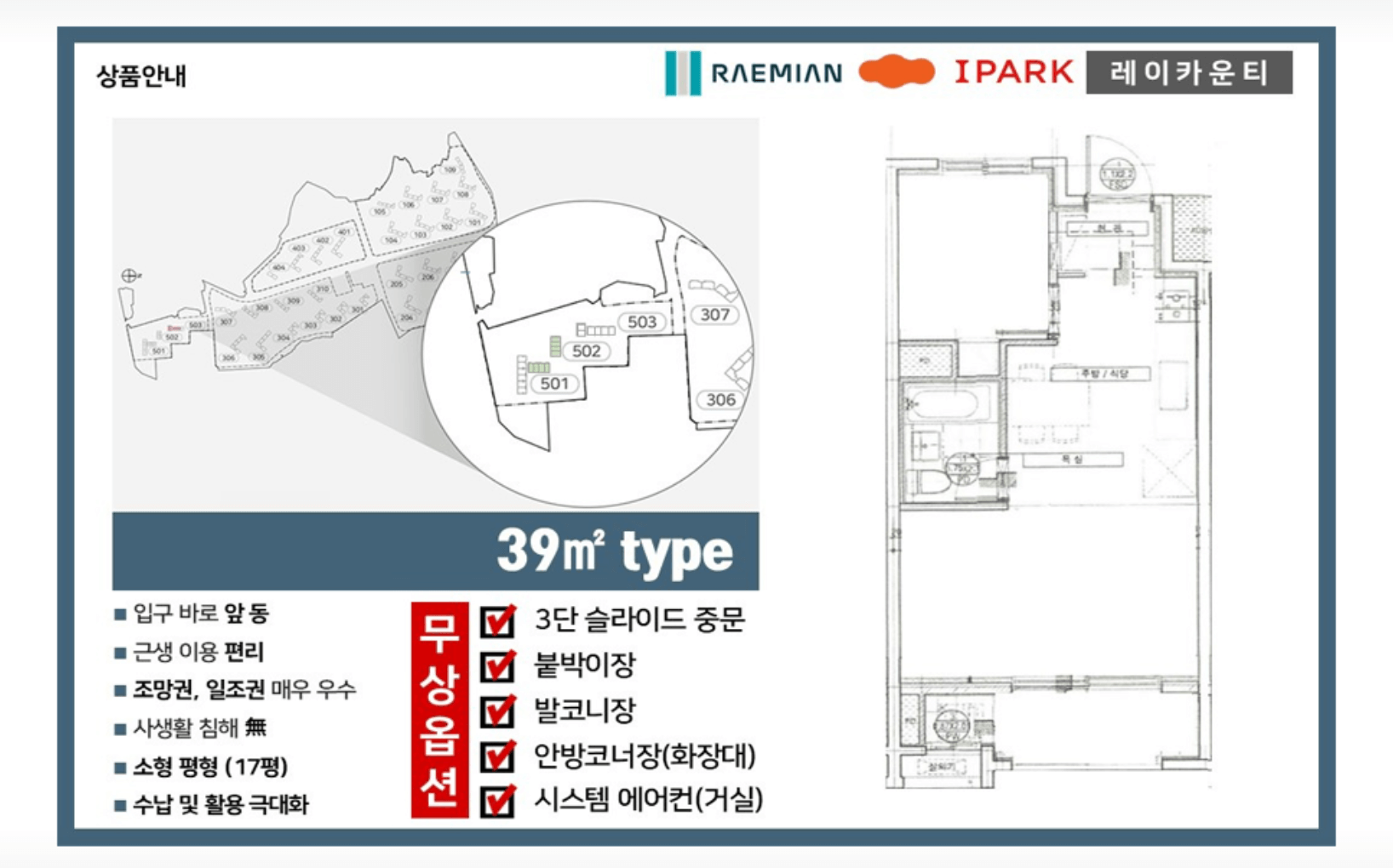 3. 1~2인 가구 맞춤형 구조, 공간 활용이 뛰어난 평면 설계입니다