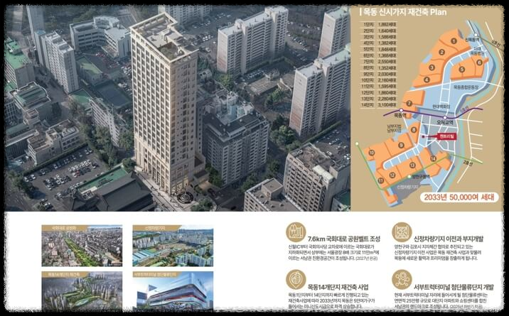 2033년까지 약 5만 가구 규모의 대규모 주거타운으로 탈바꿈할 예정입니다. 이는 단순한 재건축이 아니라 ‘신도시급 생활권’이 조성되는 것입니다. 대규모 상권과 기반시설이 함께 들어서며, 목동 일대의 주거 수준이 한 단계 업그레이드될 전망입니다.