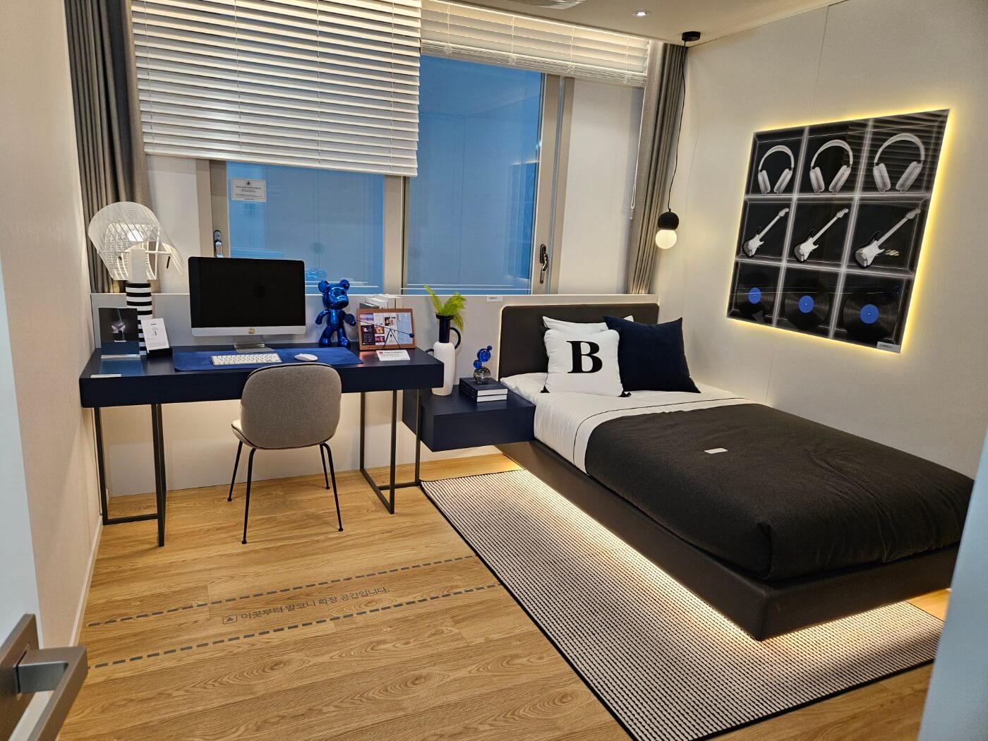 시스템 에어컨, 홈네트워크 시스템, LED 조명, 대기전력 차단 시스템 등 최신 디지털 기술을 적용해 편리함과 에너지 효율을 동시에 제공합니다. 단지 내에는 피트니스센터, GX룸, 야외 캠핑장, 스터디룸, 미니도서관 등 다양한 커뮤니티 시설이 마련되어 건강과 여가, 학습까지 고려한 생활환경을 제공합니다. 특히 북카페와 스터디룸은 부모와 자녀가 공존할 수 있는 공간으로, 단지 내에서도 수준 높은 일상을 누릴 수 있습니다.