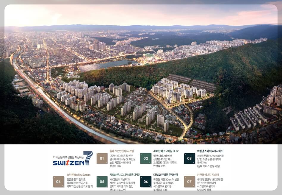 많은 사람들이 “도심은 편하지만 공기가 나쁘고, 자연은 좋지만 교통이 불편하다”는 딜레마를 겪습니다. 하지만 수성 포레스트 스위첸은 앞산과 법이산을 곁에 둔 ‘숲세권’이자, 수성구 명문 학군을 모두 품은 ‘학세권 단지’입니다.