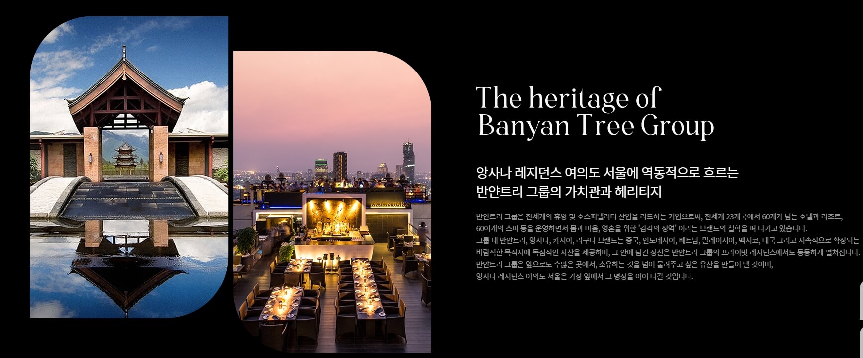 앙사나 레지던스 여의도 서울은 반얀트리 그룹의 오너십 프로그램인 생추어리 클럽(Sanctuary Club) 혜택을 제공합니다. 생추어리 클럽 회원은 전 세계 반얀트리 그룹의 호텔, 스파, 레스토랑, 갤러리 상품 할인과 함께 골프 할인, 얼리 체크인 및 레이트 체크아웃 등의 다양한 혜택을 누릴 수 있습니다. 이는 전 세계에 있는 반얀트리, 앙사나, 카시아 및 라구나 등 반얀트리 그룹의 프라퍼티 소유주에게만 주어지는 특권으로, 글로벌 라이프스타일을 경험할 수 있는 기회를 제공합니다.