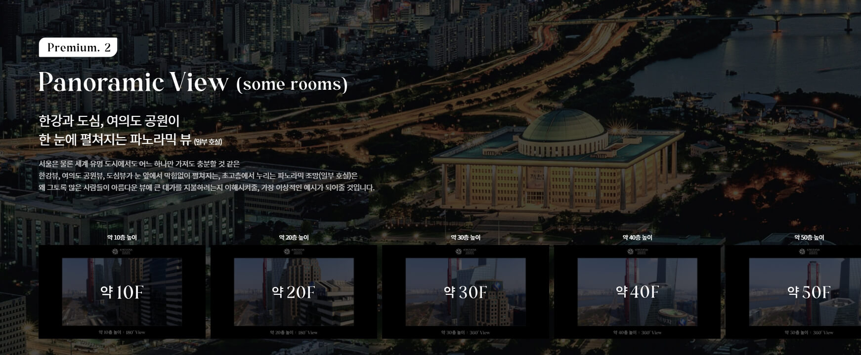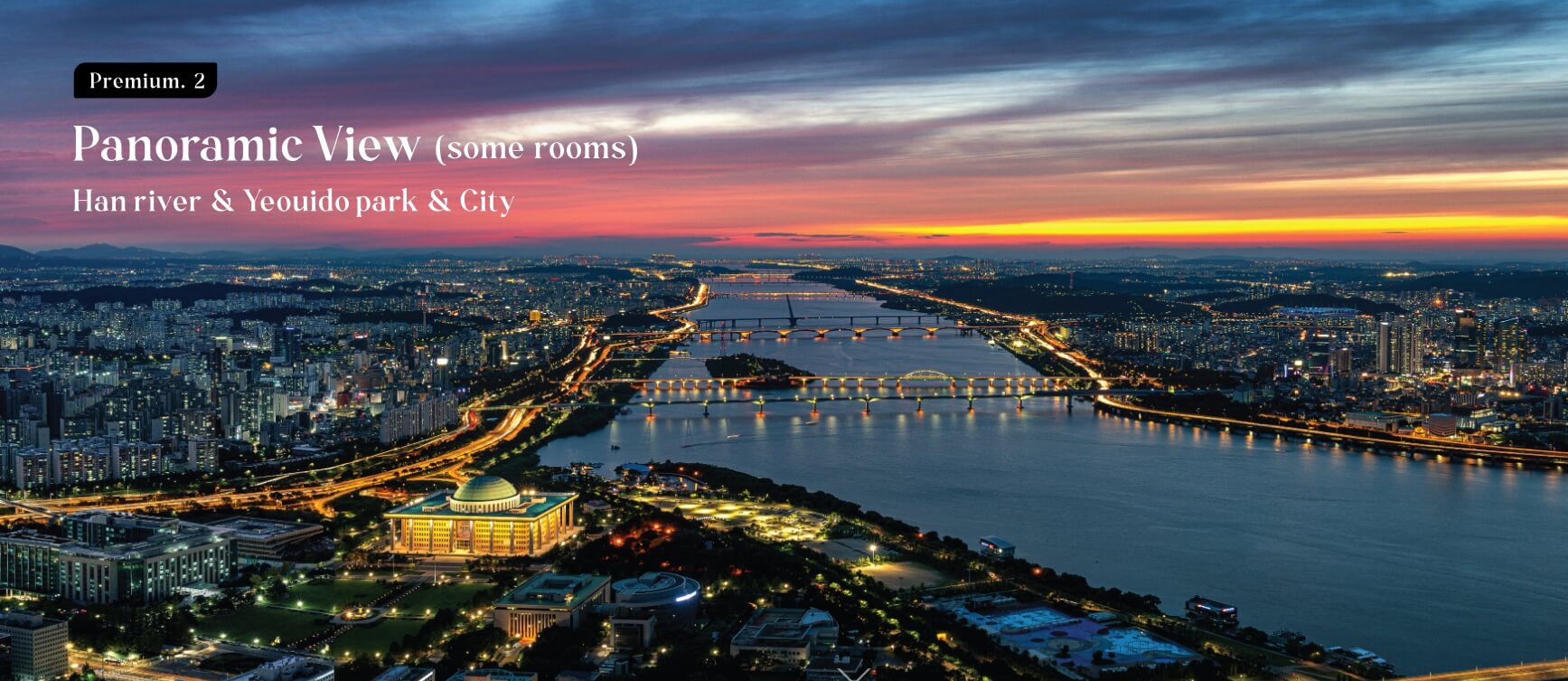 앙사나 레지던스 여의도 서울은 다양한 매력의 조망을 자랑합니다. 고층에서 내려다보는 여의도공원의 여유로움과 한강의 쾌적함, 그리고 도심의 화려한 전경을 각 호실에서 즐길 수 있습니다. 특히 57층 고층에 위치한 루프탑에는 약 22m 길이의 스카이 인피니티 풀이 설치될 예정으로, 여의도 공원부터 한강을 아우르는 파노라마 뷰를 감상하며 수영을 즐길 수 있습니다. 이 같은 고층에서의 특별한 시설은 서울 도심에서는 찾아보기 어려운 프리미엄 시설입니다.