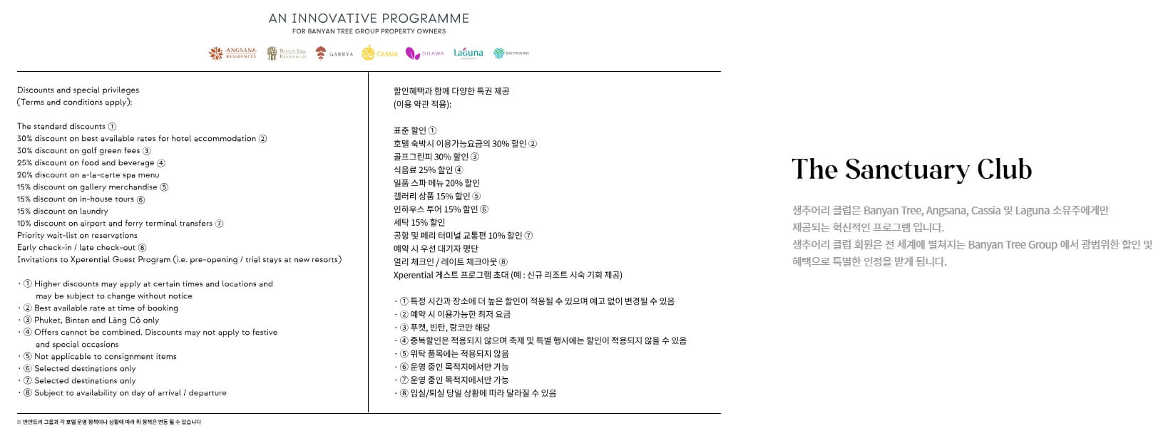 반얀트리 그룹 생추어리 클럽의 특별 혜택