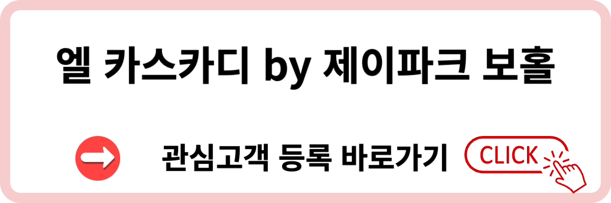 엘카스카디 제이파크 보홀은 천혜의 자연환경과 다양한 즐길 거리를 갖춘 보홀 팡라오섬에서 세계적인 명소로 주목받고 있는 지역에 위치하며 리조트 내부는 수요자들의 취향과 라이프 스타일을 고려하여 다양한 평면으로 구성되었습니다. 보혼 우위트, 팡라오게스트, 패밀리 디럭스 등 다양한 유형의 객실을 제공하며, 다채로운 인테리오 콘센트로 손님들을 맞이합니다. 또한 풀 빌라는 힐링 콘셉트가 적용되어 숲과 바다를 즐길 수 있는 휴양형 공간으로 꾸며져 있습니다. 인천 국제공항에서 팡라오 국제공항까지 직행 비행기 이용하면 4시간 정도면 도착하며 초콜릿힐, 타르시아 원숭이 서식지, 번지아일랜드, 로복강 투어, 호핑투어, 반딧불 투어 등 다양한 관광명소가 있습니다. 또한 팡라오 국제공항에서 4.5km 약 8분 소요로 접근성이 우수합니다.