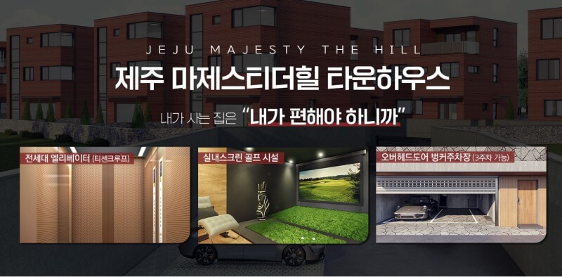 마제스티더힐은 제주시내에서도 교통이 편리하고 조용한 환경에서 살 수 있는 타운하우스로, 아파트보다도 저렴한 분양가로 제공됩니다. 입주 가능일은 즉시이며, 다양한 옵션과 함께 고급스러운 생활을 제공합니다.