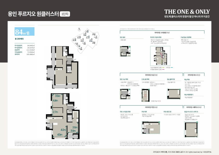 용인 푸르지오 원클러스터 1단지는 실내 설계에서도 입주민의 편의를 고려한 혁신적인 구조를 자랑합니다. 각 세대는 4 베이 구조로 설계되어 있어 효율적인 공간 활용이 가능하며, 안방에는 드레스룸이 마련되어 있습니다. 또한, 추가적인 생활공간을 제공하는 알파룸을 통해 다양한 용도로 공간을 활용할 수 있습니다.