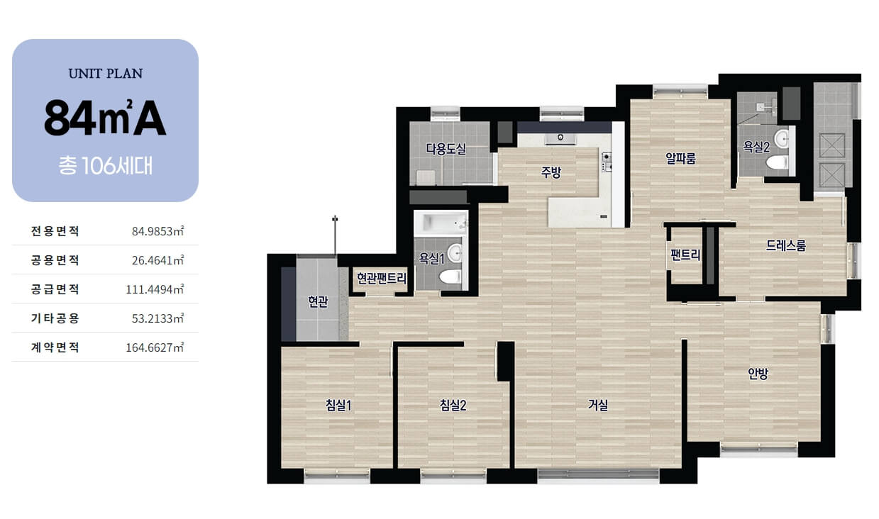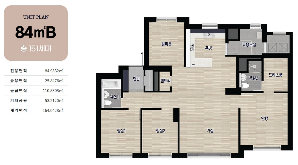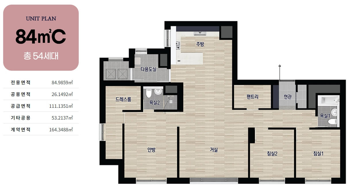 84㎡A(106세대), 84㎡B(151세대), 84㎡C(54세대)