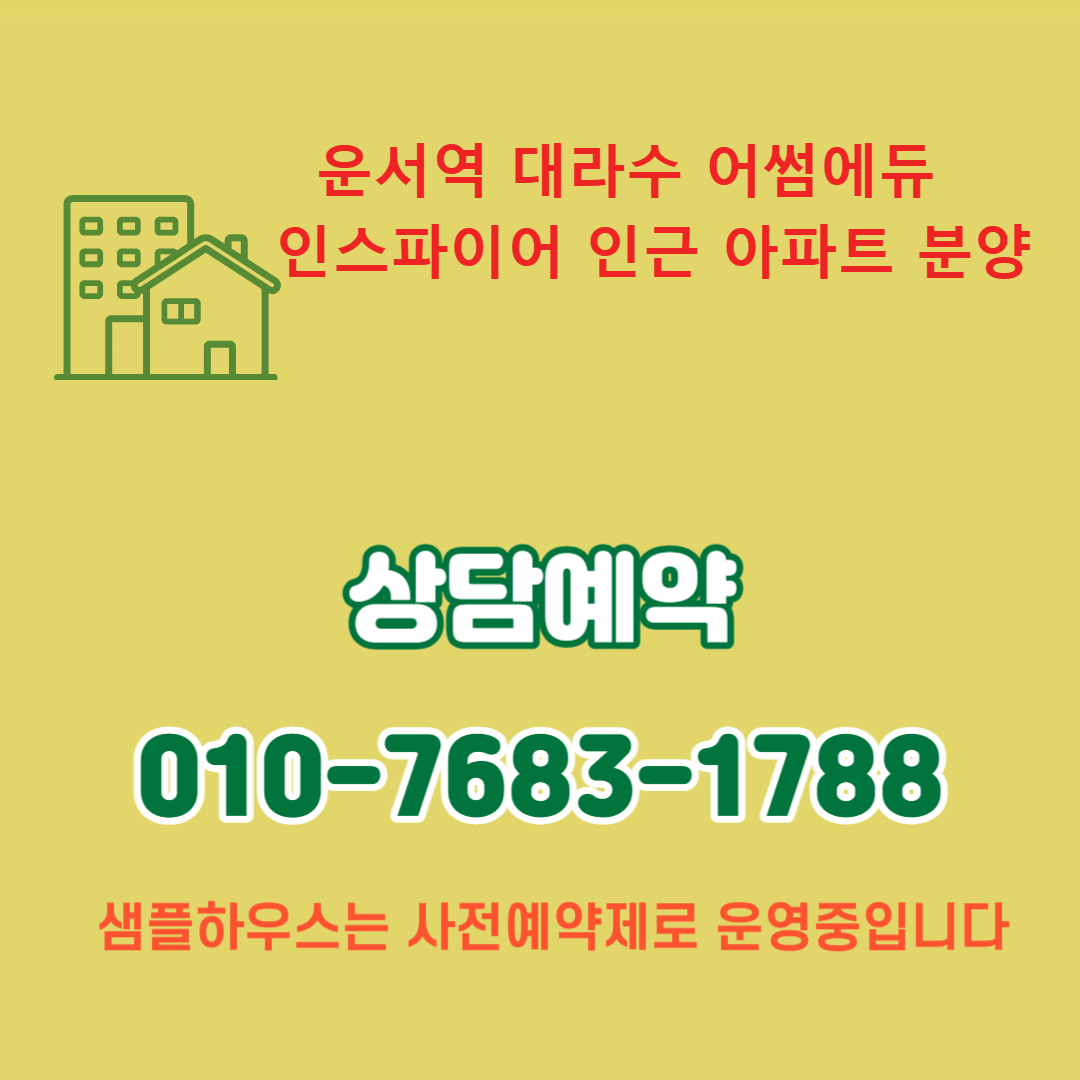 100% 사전예약제로 운영하고 있습니다. 상담 및 모델하우스 방문계획이 있으신 분은 아래 번호로 연락 주시면 상담 및 방문예약을 해드립니다. 주말 황금열쇠 이벤트도 진행하고 있습니다. 많은 관심과 문의 부탁드립니다. 감사합니다.