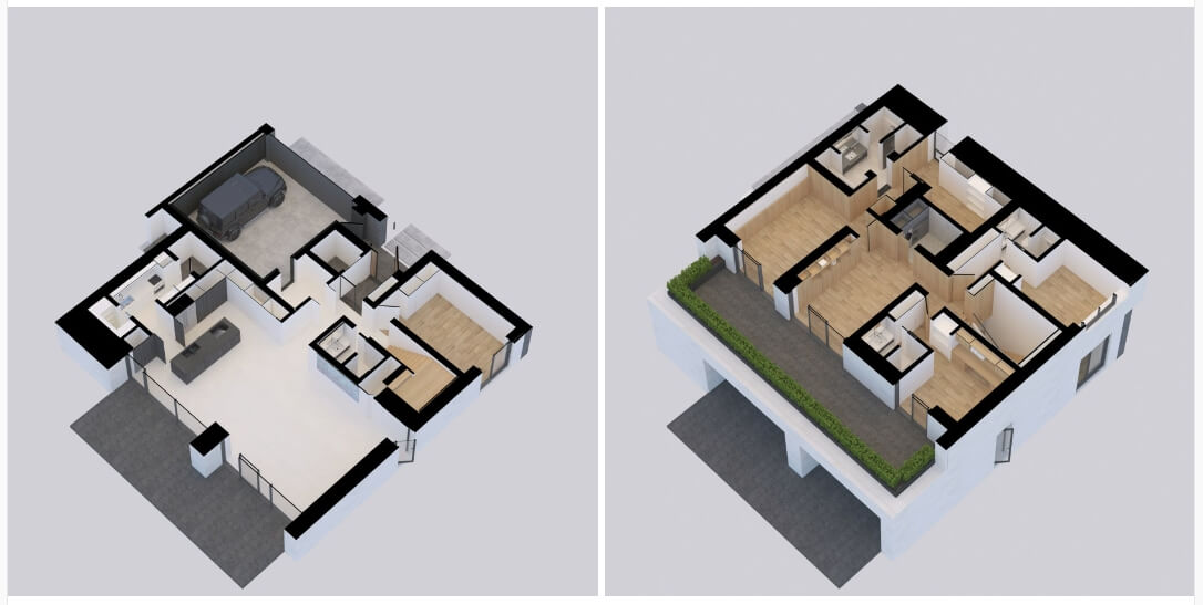 더 갤러리 나인은 후분양으로 제공되는 총 9세대의 고급 타운하우스입니다. 후분양의 장점은 소비자가 완성된 주거 환경을 직접 확인한 후 선택할 수 있다는 점에서 신뢰성을 제공합니다. 모든 세대가 남향으로 배치되어 제주도의 햇살을 온전히 받을 수 있도록 설계되었으며, 개방적이면서도 프라이빗한 단지 구조는 자연과 건축이 조화를 이루는 공간을 창출했습니다. 더 갤러리 나인은 6세대의 수영장 없는 타입과 3세대의 수영장이 있는 타입으로 구성되어 있습니다. 기본적으로 방 4개, 욕실 4개, 넓은 마당과 실내 벙커 주차장을 갖추고 있으며, A, B 타입의 벙커 주차장은 2대를 수용할 수 있습니다. 좌우 개폐형 자동문이 설치된 주차 공간은 최대 3대의 차량을 주차할 수 있어, 가족 단위의 주거에 최적화된 환경을 제공합니다.