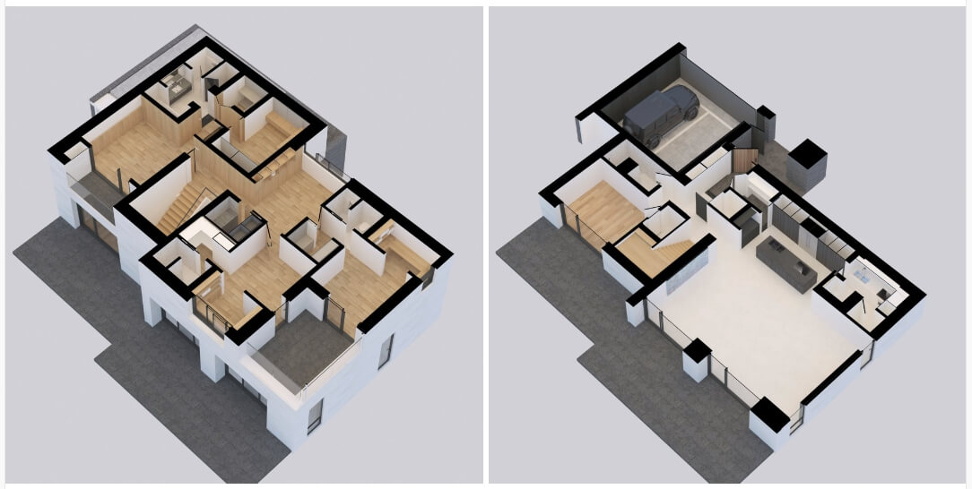 2층에는 방 4개, 욕실 3개, 세탁실, 그리고 테라스가 위치해 있습니다. 긴 복도를 따라 배치된 4개의 방은 각각의 공간에서 최적의 프라이버시를 제공합니다. 침실이 있는 2층의 바닥은 고급 원목 마루로 시공되어, 자연스러운 온기를 느낄 수 있습니다. 마스터룸 침실은 넓고 여유 있는 공간을 자랑하며, 호텔급의 고급스러운 욕실이 포함되어 있습니다.