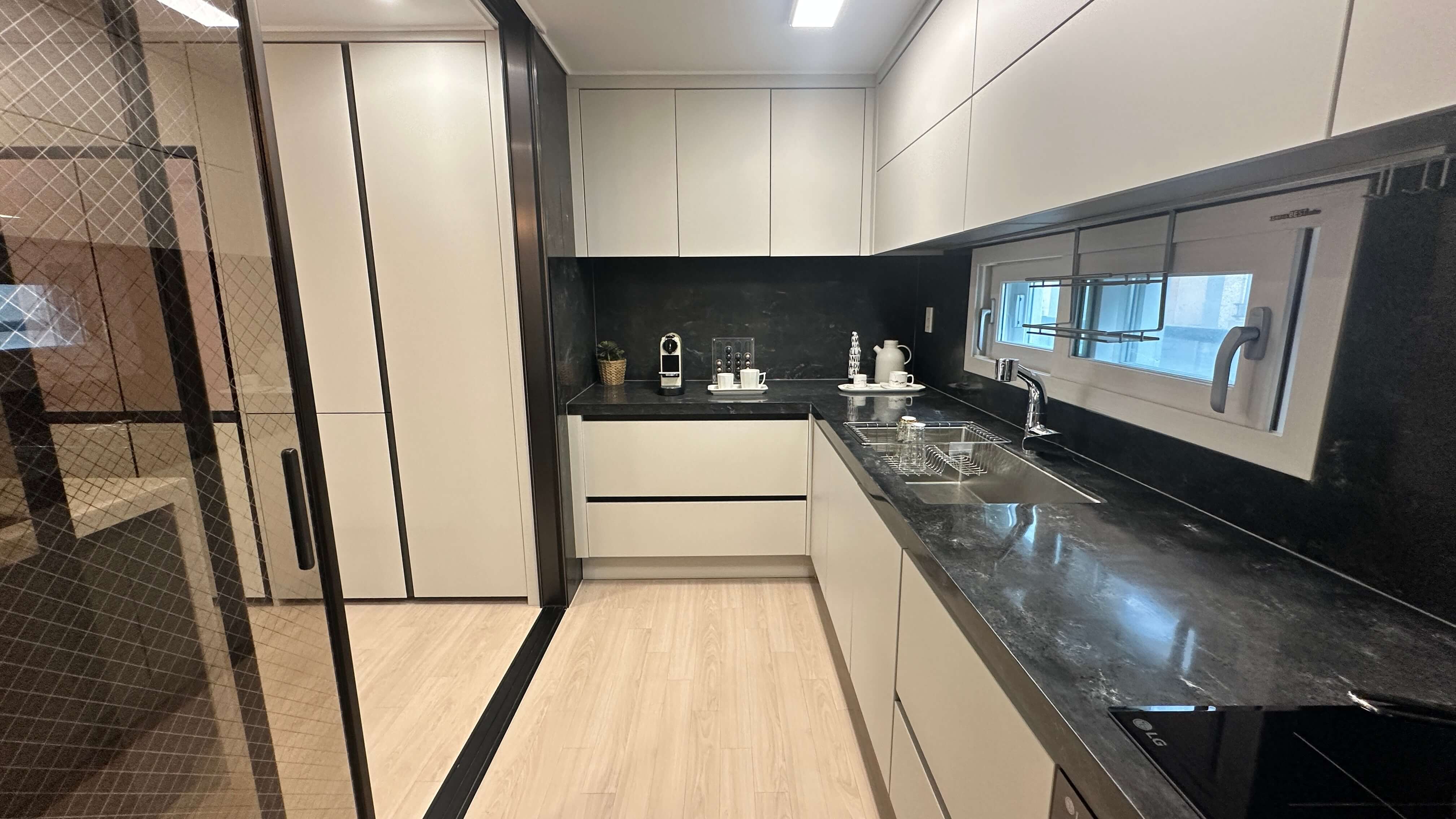 - B 타입: 3룸 + ㄱ자형 키친 플레이스