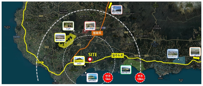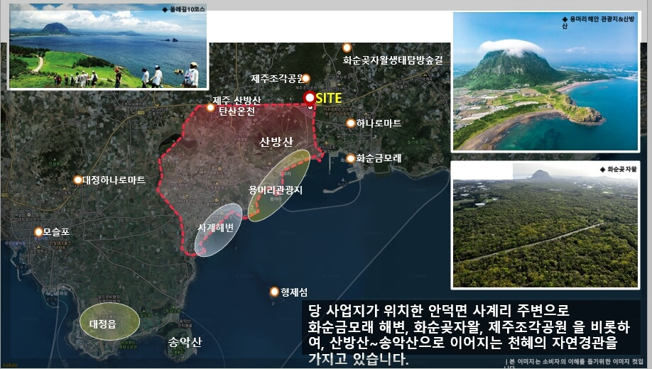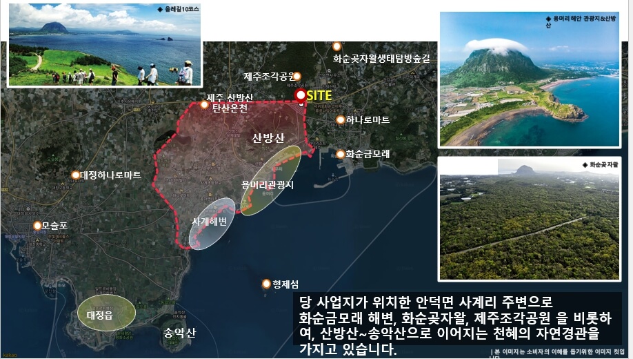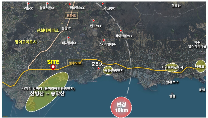 주요 관광지와 인접: 산방산, 금모래 해수욕장, 신화월드, 중문 관광단지