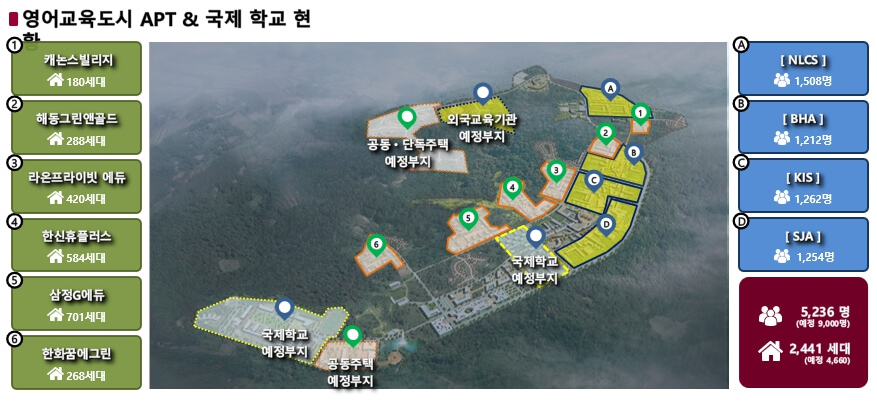 서귀포시의 영어교육도시는 2011년 개교 이후 꾸준한 성장세를 보이며 국제학교 정원이 8,000여 명에 달할 예정입니다. 이에 반해, 인근 지역의 주택 공급은 여전히 부족한 실정으로, 향후 주택 수요는 더욱 증가할 전망입니다.