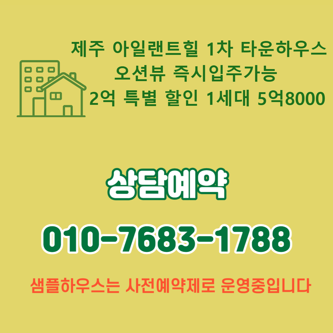 제주 아일랜드힐 1차 타운하우스 특별 할인 분양! 바다 조망과 제주영어교육도시 인접