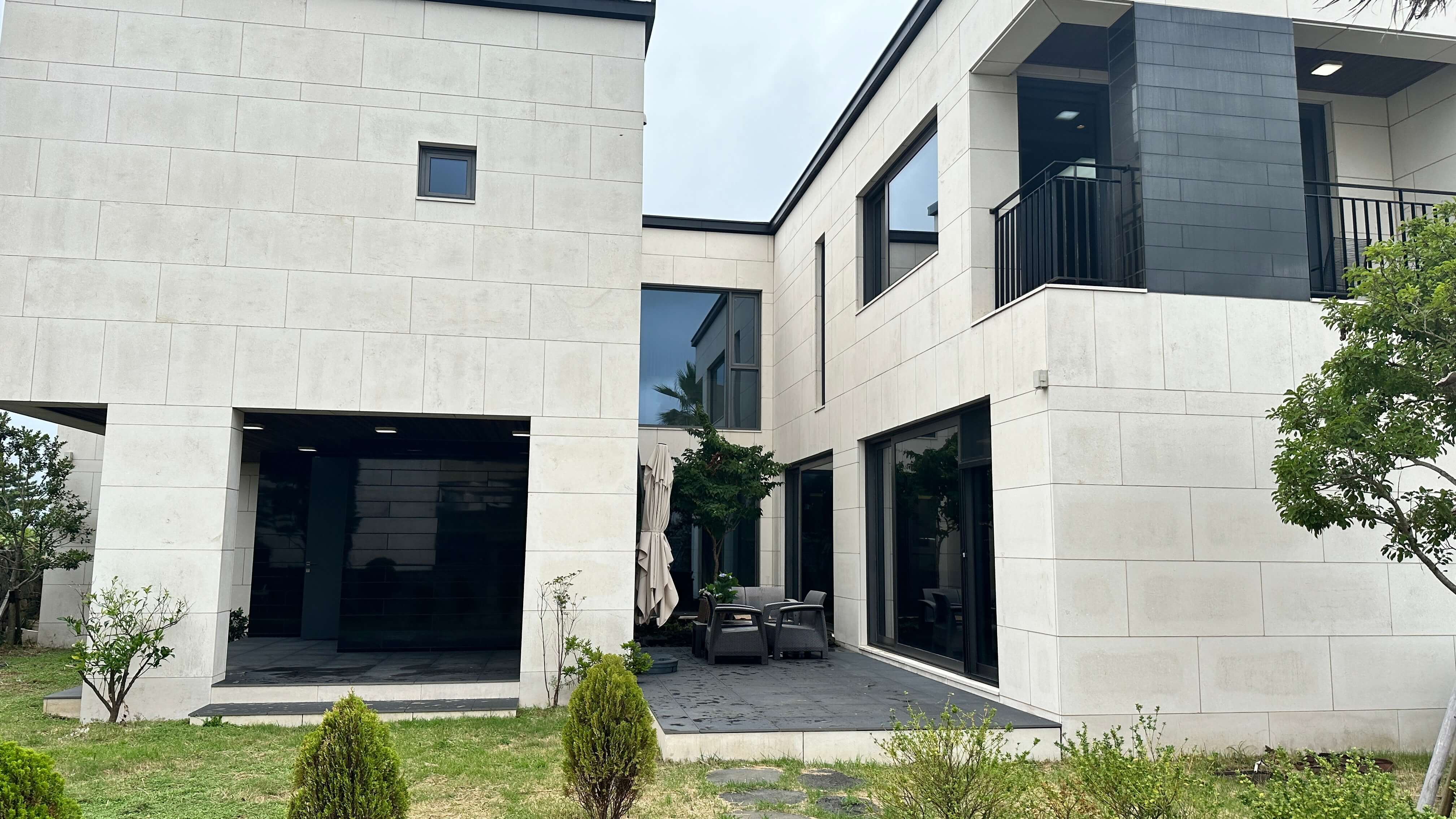 제주도 서귀포시 안덕면에 위치한 포스힐 프레스티지는 제주 영어교육도시 내에 조성된 고급 타운하우스로, 입주민의 프라이버시와 개방감 있는 생활을 동시에 만족시킬 수 있도록 설계되었습니다. 총 17세대로 구성된 이 단지는 고급스러운 인테리어와 실용성을 갖춘 다양한 옵션을 제공해 입주민들이 쾌적하고 안락한 생활을 누릴 수 있도록 하였습니다. 단지 내 조경은 제주도 특유의 돌담을 활용해 외부로부터 안전하면서도 고즈넉한 분위기를 연출합니다. 또한 대문과 단지 내 도로는 깔끔하게 포장되어 입주민들이 안정감을 느낄 수 있습니다. 라임스톤 마감재로 시공된 주택 외관은 관리가 용이하며, 밝고 산뜻한 느낌을 주어 세련된 이미지로 선사합니다.