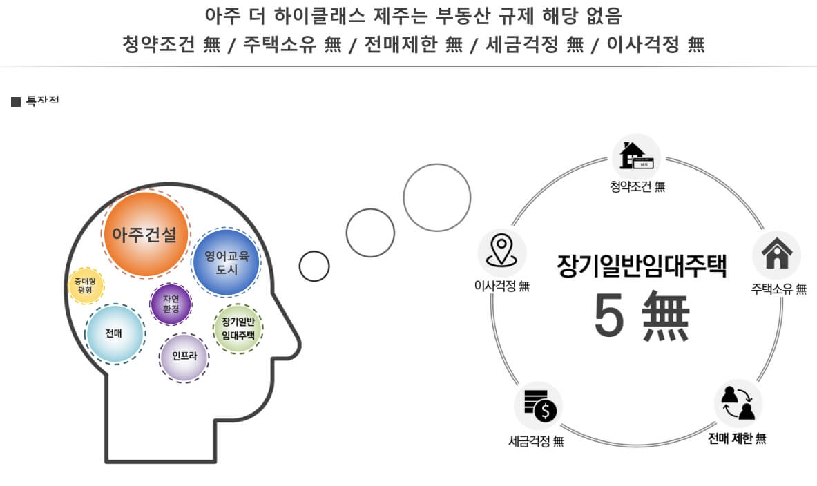 아주 더 하이클래스의 매력은 그런 주거환경만으로 끝나지 않습니다. 이 단지는 제주의 미래성장을 뒷받침하는 다양한 인프라와의 교차로에 위치하고 있습니다. 제주 영어교육도시와의 인접성은 학부모들의 학교 선택에 큰 영향을 미치는 요인 중 하나입니다. 이 교육 단지는 다양한 국제학교를 비롯한 교육 시설이 모여 있어 자녀의 교육에 대한 부담을 덜어주며, 제주의 미래를 밝은 방향으로 이끌 것으로 기대됩니다.