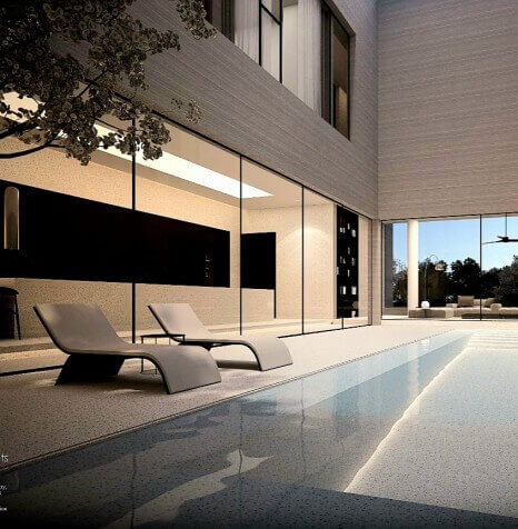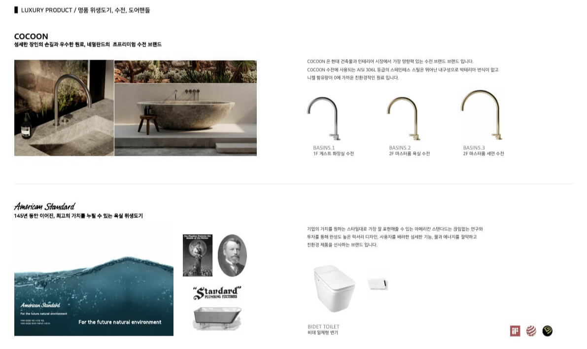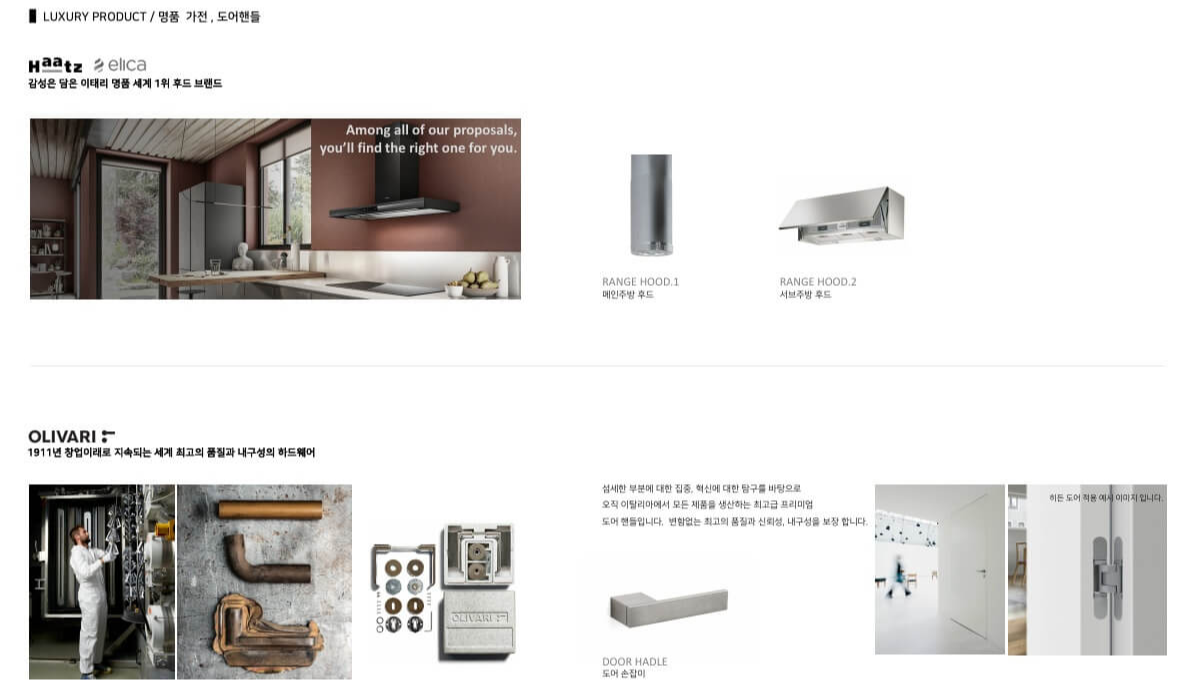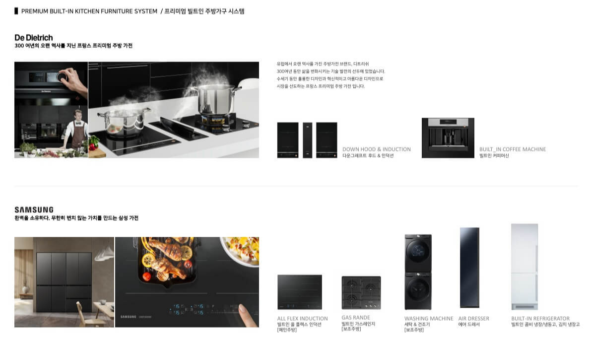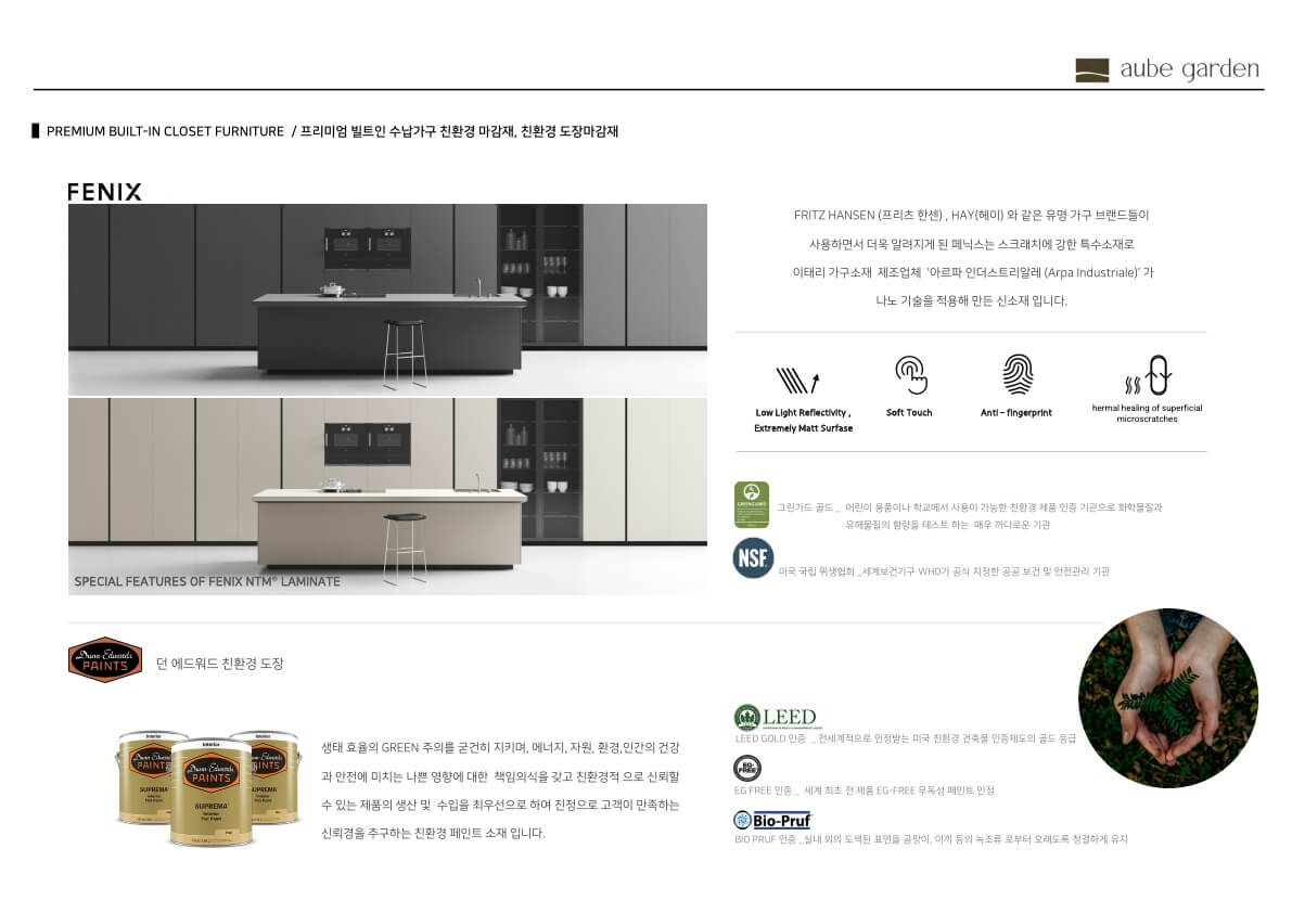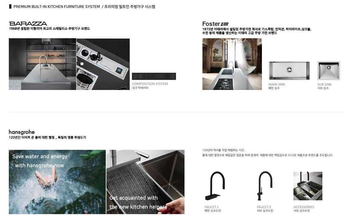 내부 인테리어는 이태리의 세계적인 타일 제조 회사인 아리오스테아사의 세라믹 타일로 마감하였습니다. 주방은 이태리 최고급 친환경 세라믹 타일로 마감되며, 9m의 슈퍼 롱 아일랜드와 식탁이 주방의 품격을 높여줍니다. 또한 12m의 주방 수납공간에는 풀옵션 수입 명품 가전 브랜드와 최고 퀄리티의 가구들이 제작되어 있으며, 보조주방과 세탁실이 메인 주방과 별도로 분리되어 생활의 편리함을 더합니다.