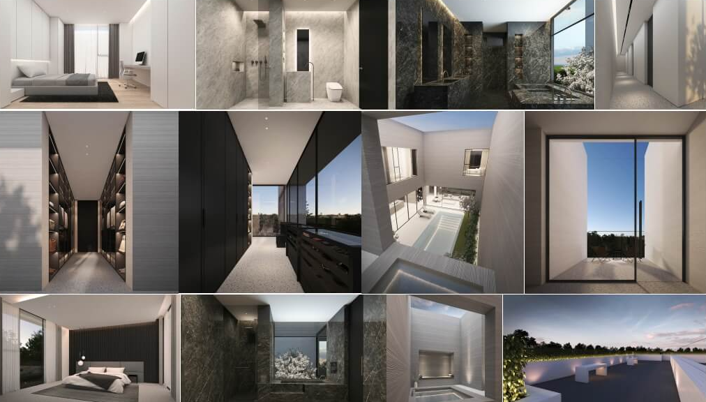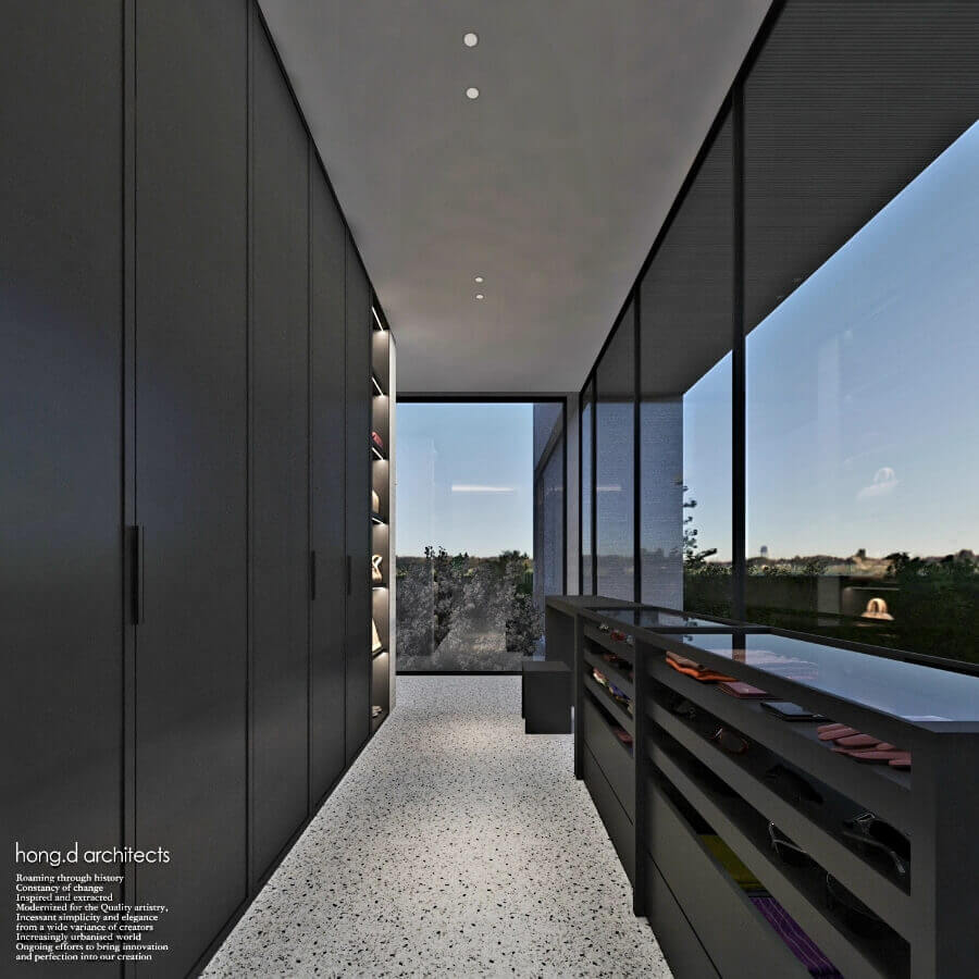 오브가든의 2층에는 제주의 밤하늘을 보며 오롯이 나만의 시간을 보낼 수 있는 테라스 스파가 있습니다. 마스터룸은 가족들과 같은 층에 있지만, 중정과 복도를 지나 소음과 동선을 차단하는 공간 배치로 독립성을 제공합니다. 와이드한 파노라마 뷰를 자랑하는 드레스룸도 주목할 만합니다.