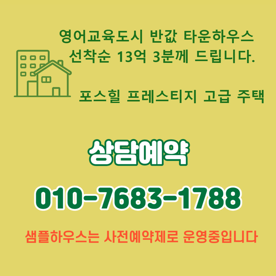 제주 영어교육도시 고급 타운하우스, 포스힐 프레스티지 반값 할인 13억 선착순 3채