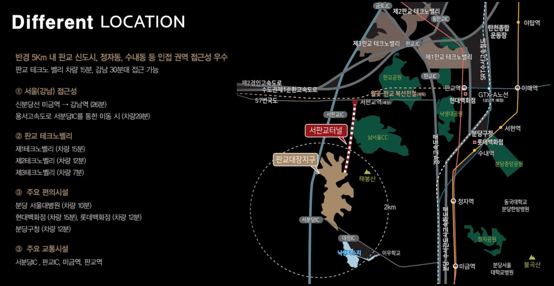판교 대장지구의 우수한 입지 조건