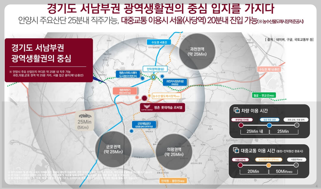 향후 GTX C노선과의 환승, 월곶판교선과 인덕원동탄선 개통 등 광역 철도망 계획이 예정되어 있어 수도권 주요 도심으로의 접근성이 크게 개선될 전망입니다. 또한 평촌고가교를 통해 과천과 판교까지 이동 시간이 단축되어 향후 입지 프리미엄이 기대됩니다.